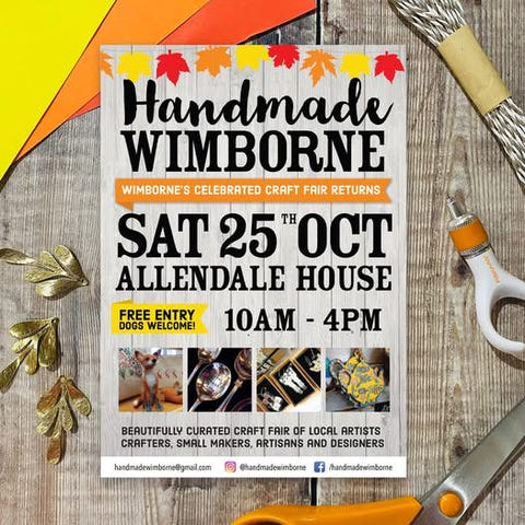 I cannot wait to for the return of the fabulous Handmade Wimborne Craft Fair, now located at the gorgeous Allendale House. Find me on the first floor alongside a beautifully curated hand-picked craft fair full of local high-end artists, crafters, small makers, artisans and designers. 25th October 10am - 4pm Free entry and dogs welcome!